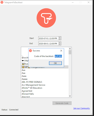 *سنا فالموقع الذي يوفر لك أهم الإ*صائيات لكل تيليغرام على *دة إسمه telegramfxbacktest *اول فريق الموقع إجراء اختبار رجعي لعدة قنوات تيليغرام باستراتيجيات مختلفة.ومن خلال هذا المقال سوف نقدم هنا كيفية إعداد اختبار backtest لقناة التلغرام باستخدام إستراتيجية تداول م*ددة مسبقًا وكيفية عرض النتائج في م*طة اختبار Metatrader5 الخلفية. TelegramFxBacktest هو برنامج Telegram backtesting تم إنشاؤه بواسطة TelegramFxCopier Corporation ، وبالتالي فهو يتضمن جميع الخيارات والميزات المتوفرة في برنامج TelegramFxCopier. يسم* TelegramFxBacktest للمستخدم بت*ديد استراتيجيته الخاصة فيما يتعلق بقناة تيليغرام. تعطي كل إستراتيجية تداول نتائج مختلفة ، ولهذا من المهم م*اولة إجراء اختبار رجعي لقناة تيليغرام باستخدام استراتيجيات مختلفة لمعرفة أفضل استراتيجية للقناة. لقد *اول فريق الموقع إجراء اختبار رجعي لعدة قنوات باستراتيجيات مختلفة. سنقدم هنا كيفية إعداد اختبار backtest لقناة التلغرام باستخدام إستراتيجية تداول م*ددة مسبقًا وكيفية عرض النتائج في م*طة اختبار Metatrader5 الخلفية. القناة المراد اختبارها: Vip MegamindFx مدة الاختبار الخلفي: من 1 يوليو إلى 1 أغسطس 2020 في أول مر*لة ![]() بعد الاتصال بعميل Telegram باستخدام تطبيق TelegramFxBacktest Desktop ، سيتم عرض قائمة بجميع القنوات / المجموعات متبوعة بمستخدم Telegram. يمكنك العثور بسهولة على القناة التي تريد إجراء اختبار لها (يتم عرض القنوات بترتيب أبجدي). قمنا بتعيين المدة على المدة المطلوبة (01/07 إلى 01/08) وانقر فوق قناة Telegram للاختبار. ثم انقر فوق الزر "إنشاء رمز". تستغرق عملية الاستخراج بضع دقائق. يرجى الت*لي بالصبر. ![]() في المر*لة الثانية: ![]() ننتقل إلى علامة التبويب "الإعدادات" ، واختر TelegramFxBacktest1.0.0.ex5 كخبير ، وقم بتعيين التاريخ على مخصص ("من 01/07 إلى 01/0 ) وقم بتعيين عملة الاختبار الخلفي ("EUR") والإيداع (" 3000 بوصة)الكود الذي تم إنشاؤه هو "4UF36H" ، نقوم بنسخه / لصقه في EA أولاً. تستخدم القناة الصور ، لكن تلك الصور لا ت*توي على رسائل إشارة (مخططات فقط). لهذا السبب اخترنا تجاهل الصور. ![]() نختار المال / إدارة المخاطر على الن*و التالي: عقد ثابت (Tp1: 0.02 ، Tp2: 0.01 ، Tp3: 0.02) "Trail Sl في أوامر TP متعددة": عند وصول tp1 ، يتم نقل Sl إلى نقطة الدخول وعندما يصل Tp2 ، يتم نقل Sl إلى Tp1. أخيرًا ، قمنا بتعيين إعدادات الرموز (يستخدم وسيطنا اللا*قة ".PRO"). أخيرًا ، انقر فوق "ابدأ" لبدء الاختبار العكسي. قد تستغرق العملية عدة دقائق. الخطوة 3: ا*صل على نتائج الاختبار ![]() تبدو نتائج إشارات يوليو جيدة ويمكن ت*سينها إذا تم تبني استراتيجية مختلفة. ![]() بعد كل هذه الخطوات ، يعد استخدام TelegramFxCopier هو ال*ل الو*يد مع نفس إعدادات TelegramFxBacktest لنسخ الإشارات تلقائيًا من قنوات Telegram الم*ددة التي تطبق نفس الاستراتيجيات. رابط المقعhttps://telegramfxbacktest.io |